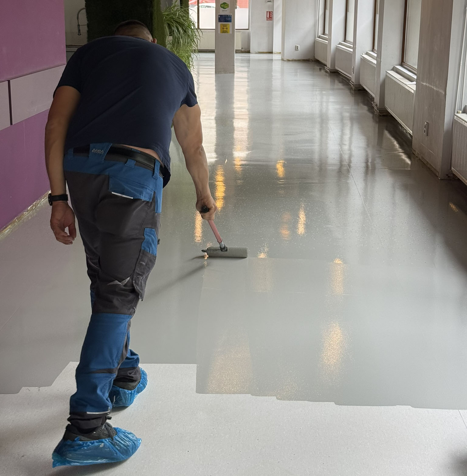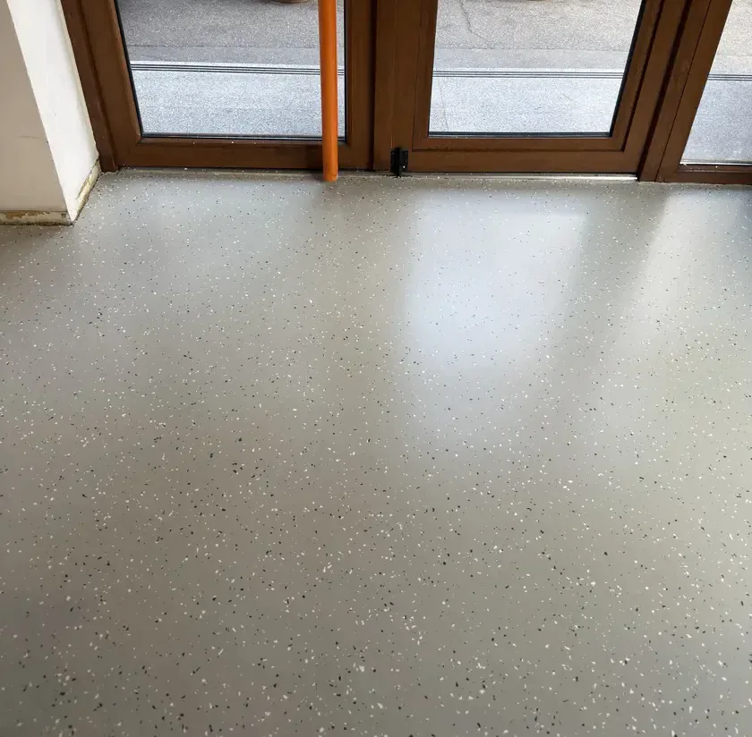 În cadrul proiectului realizat la Restaurantul Terraverde din Ploiești, echipa Radu Solutions Group a efectuat lucrări complete de recondiționare a covorului PVC, pe o suprafață totală de 220 mp. Intervenția a inclus curățarea profundă a stratului uzat cu Clean & Strip, aplicarea stratului colorat PU Color pentru reîmprospătarea aspectului și chipsurilor colorate, urmată de protecția finală cu PU Sealer, pentru rezistență sporită la trafic și pete.