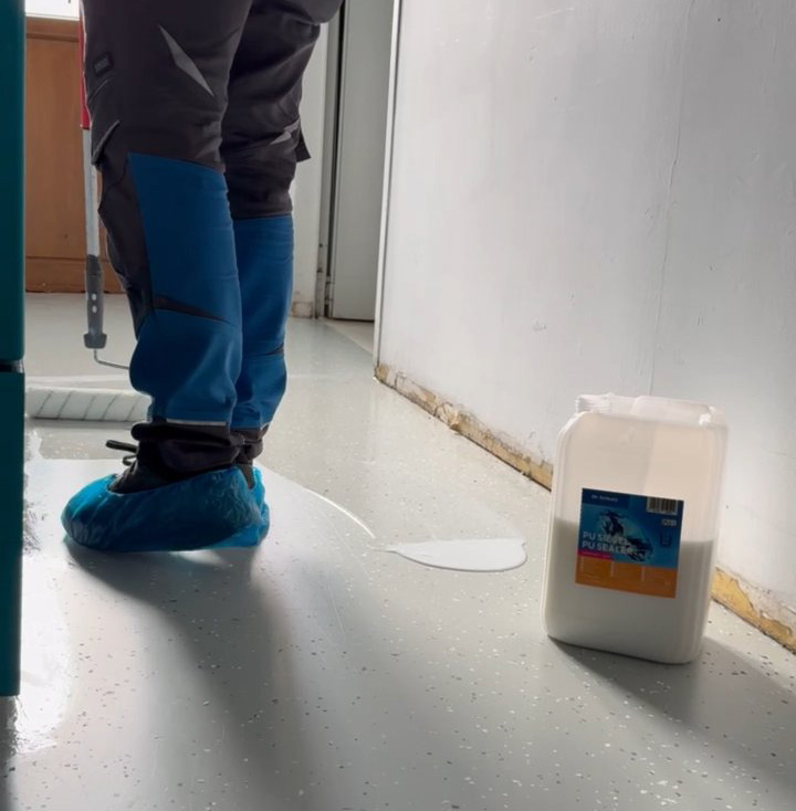 Rezultatul este o pardoseală cu un design modern și uniform, care îmbină estetica cu funcționalitatea practică. Datorită sistemului aplicat, suprafața este acum mai ușor de întreținut. Noi recomandăm folosirea detergentului PU Cleaner de la Dr. Schutz, oferind durabilitate îndelungată și un nivel ridicat de igienă – perfect adaptat mediului dintr-un restaurant frecventat zilnic de clienți.