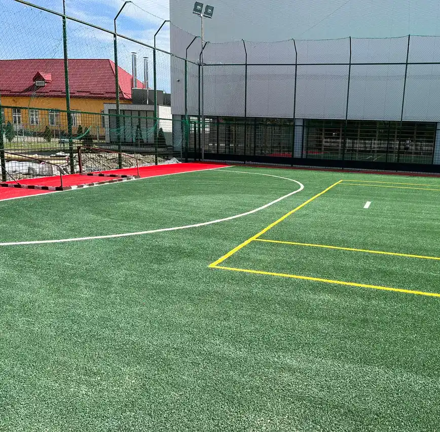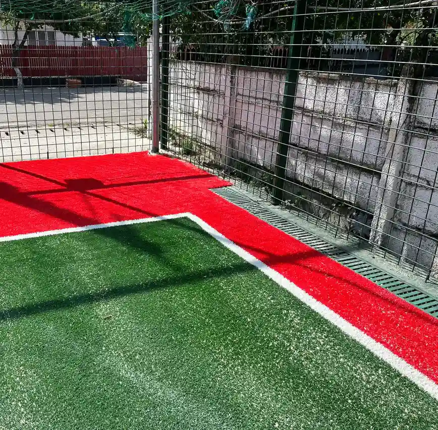 Gazonul utilizat asigură o durabilitate ridicată, o aderență optimă și o rezistență excelentă la intemperii, fiind ideal pentru utilizare frecventă. Suprafața necesită o întreținere minimă, menținându-și aspectul estetic și performanța sportivă în timp.